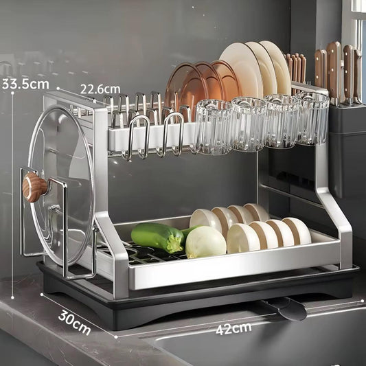 Escurridor Premium de Acero Inoxidable – 2 niveles con drenaje automático